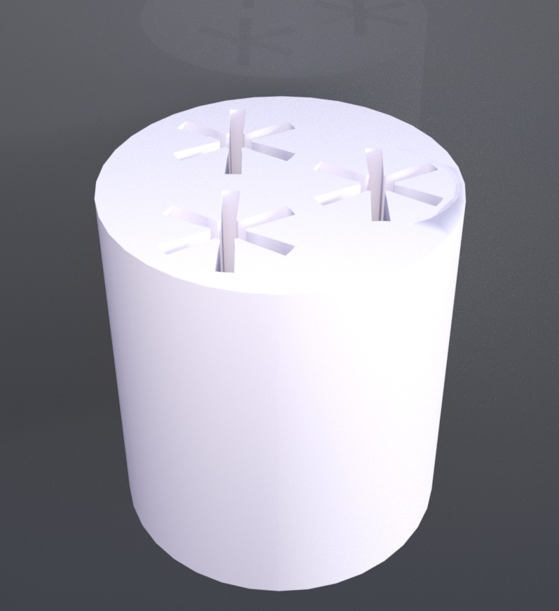 01-31-2026: This month, I worked on increasing the flow rate and thrust of the class II rocket motor. I increased the HTP ignition flow rate to ~ 71 ml/sec using three stainless steel 1/4" spray nozzles. Using the single port PLA fuel core design as a basis, I designed a new three port PLA fuel core segment. With this fuel core, I should get ~ 75N (~ 17lb) of thrust. During combustion, I plan to throttle up to ~ 100N (~ 22lb).