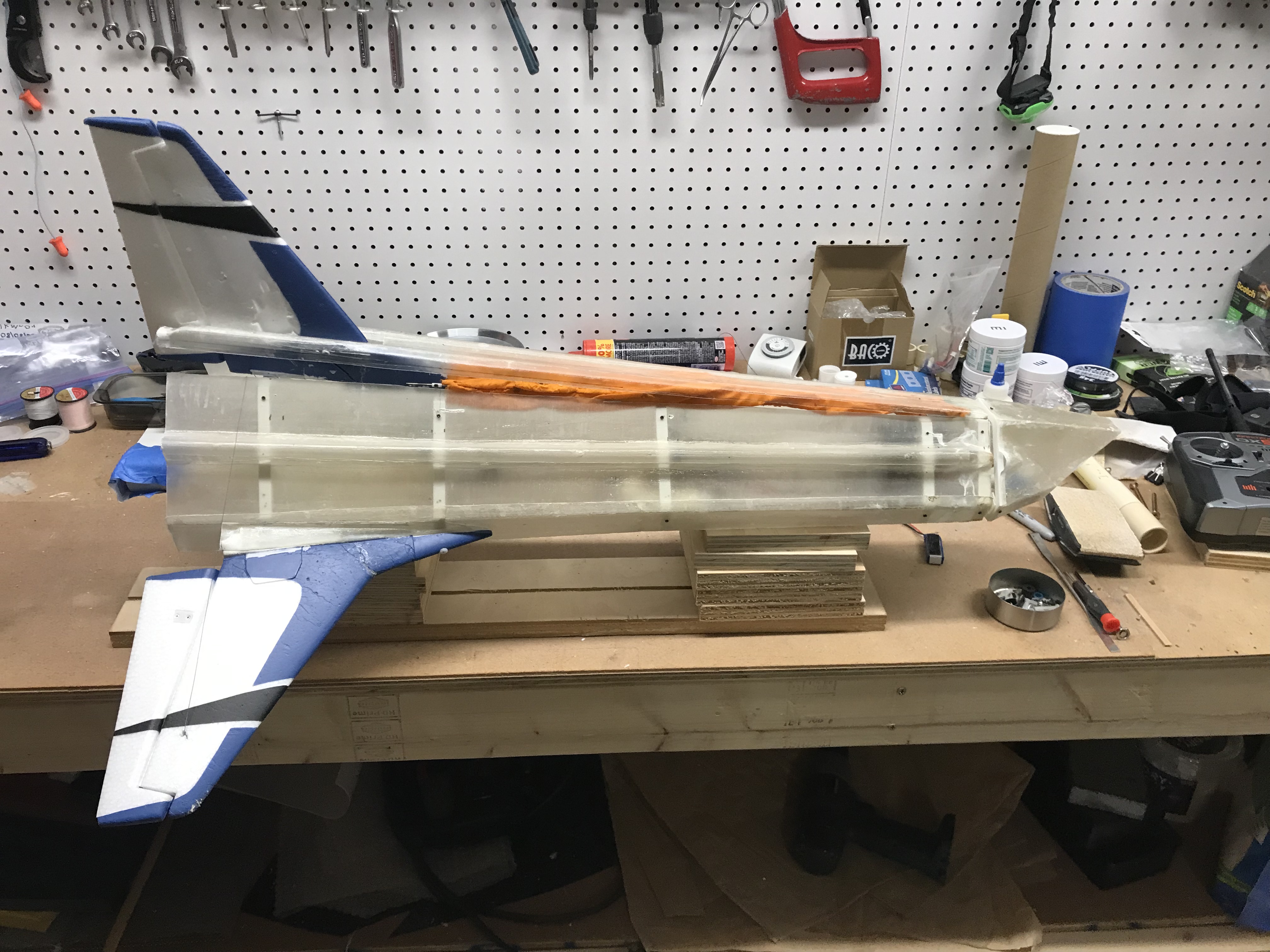 08-31-2025: This month, I had one launch attempt of the MkI Viper rocket glider. I flipped the switch on the transmitter and no ignition. There was a short in one of the switches. This destroyed the receiver, two servos, and one switch. I had to order new parts. In the mean time, I continued with streamlining the MkI Viper and took some pictures of the assembly process.