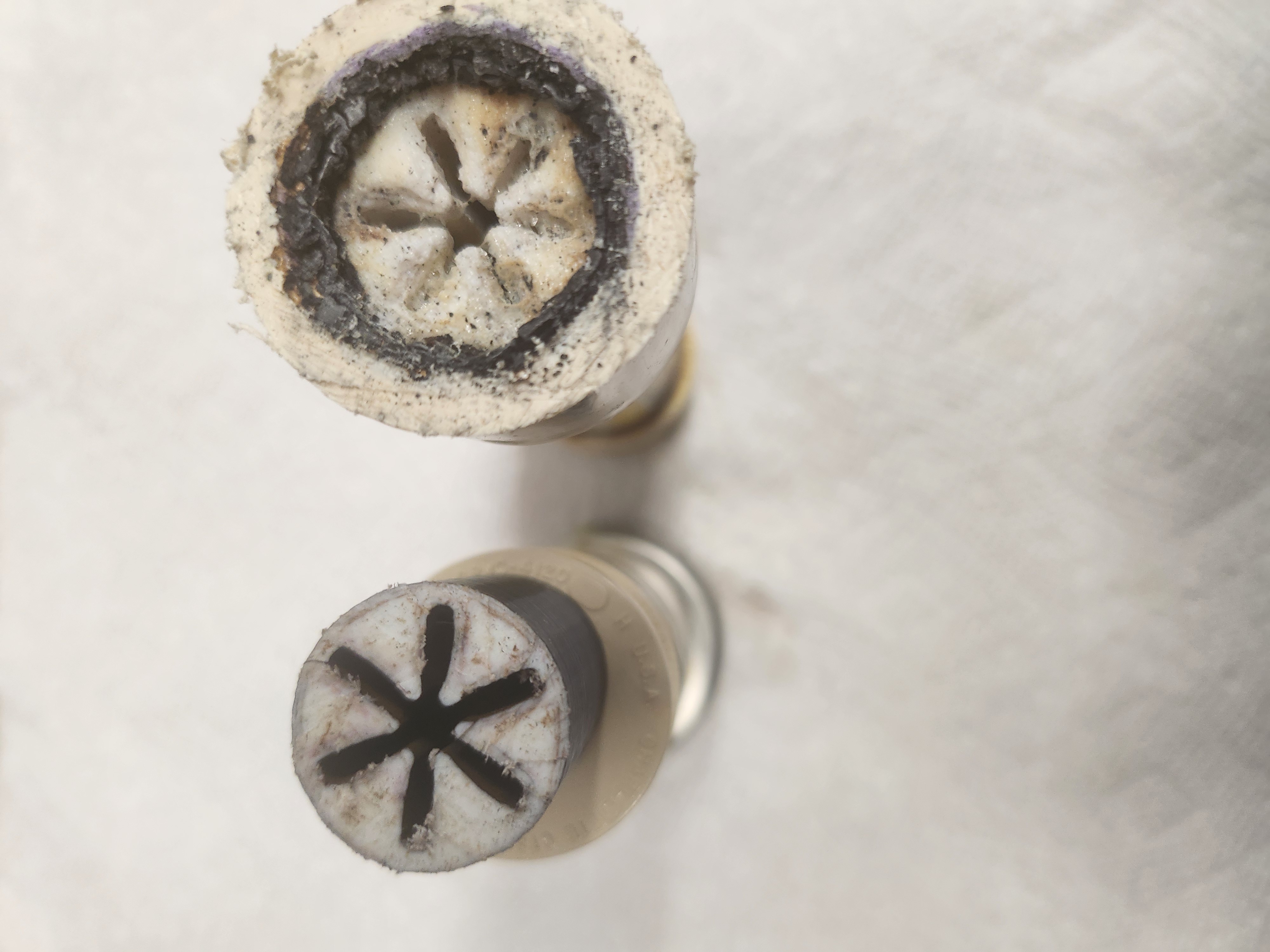 02-28-2026: This month, I worked on the class II fuel core. I printed out two 3 port 6 cm long fuel core segments and infused them with KMnO4. To prevent the fuel core segments from separating during burn, I screwed them together with a nylon screw. The next step is to assemble a rocket motor to test the fuel core segments. The objective is to determine the extent of infusion into the larger diameter PLA fuel core and to determine if the fuel core segments will stay together during burn. Also this month, I continued experimenting with a stainless steel motorized ball valve.